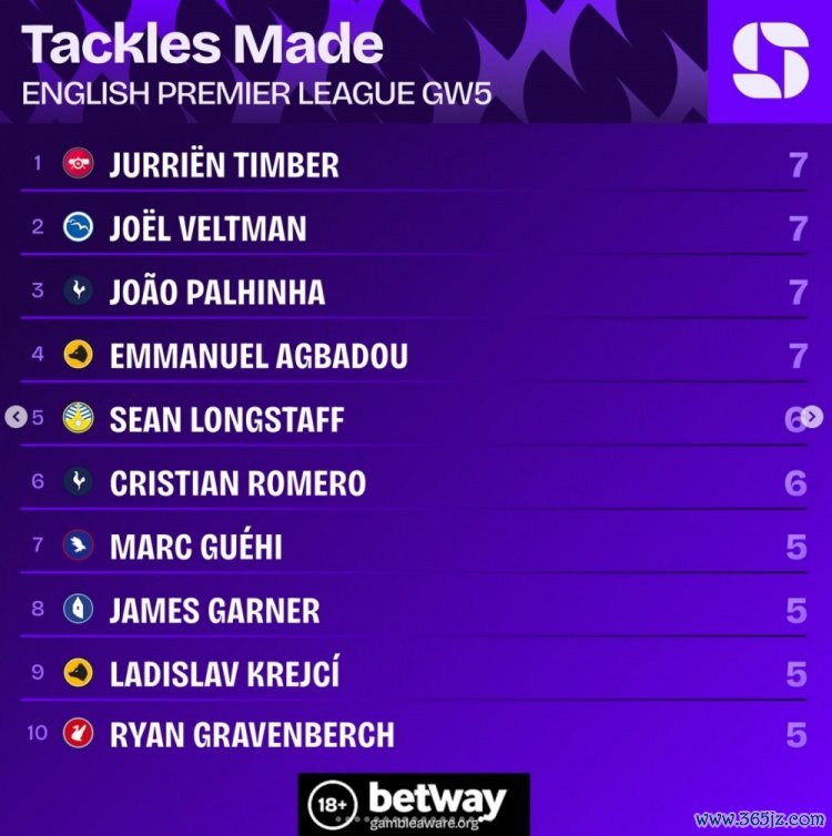 9月24日讯 英超第5轮战罢,squawkafootball列各项数据排行,德甲英超直播廷伯、帕利尼亚等四名球员是本轮完成抄截 次数最多的球员, 乒乓球资讯各有7次。