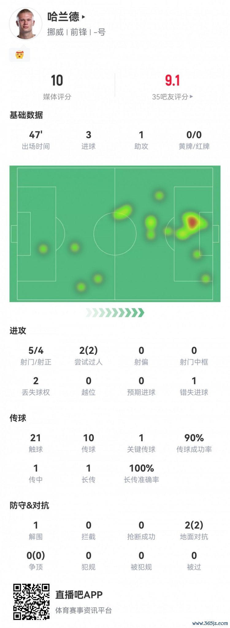 9月10日讯 正在进行的世预赛,挪威半场5-0领跑 摩尔多瓦。哈兰德半场即戴帽,德甲足球直播吧球员半场重积分 据如下↓