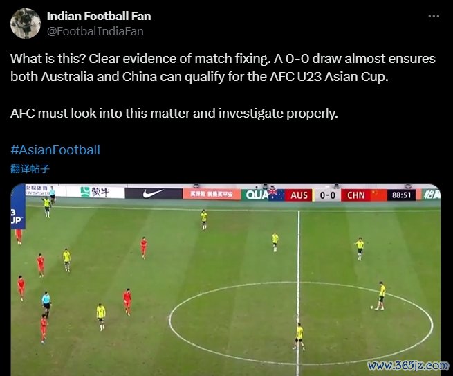 一位印度古代足球 博主在外网称澳大利亚与中国在踢假球, 网球新闻他晒出了澳大利亚最后时刻在后场倒脚并颠球的视频,德甲并表示:“这是什么?这明显是假球的证据。一场0比0的平手 几乎能确保澳大利亚和中国队都能晋级下一轮 U23亚洲杯。亚足联必须彻查此事并开展妥善调查。”