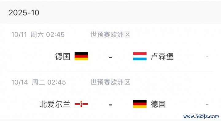 德国队10月世预赛赛程↓